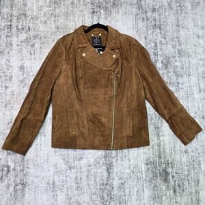 Isaac Mizrahi Live Jacket Womens 16 Brown Suede Leather Moto Biker Asymmetrical Zip