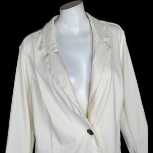 Isaac Mizrahi Live! Knit Denim Classic Slimming Blazer Cream 1X NWOT Career