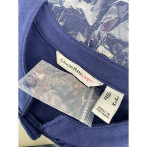 Isaac Mizrahi Live Knit Half Placket Cascade Hem Top Eyelet Detail Womens S NEW