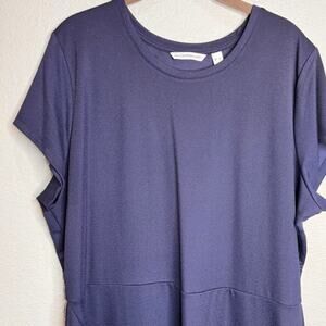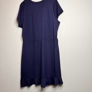 Isaac Mizrahi Live! Knit Midi Dress Navy with Ruffle Curved Hem XLG