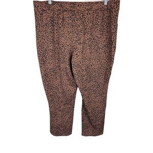 Features: side pockets, pin-tuck at center-front leg, allover printFit: fitted; cut to follow the lines of the bodyLeg Shape: slim leg; fits close to the body through the entire legInseam: tall missy/plus inseam 31"Content: 95% polyester/5% spandexCare: machine wash, tumble dryImported