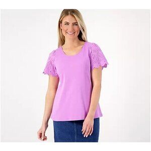 Isaac Mizrahi Live! Knit Swing Top with Eyelet Sleeves Vibrant Violet,XS