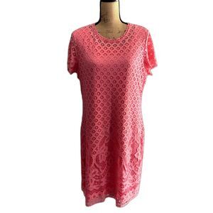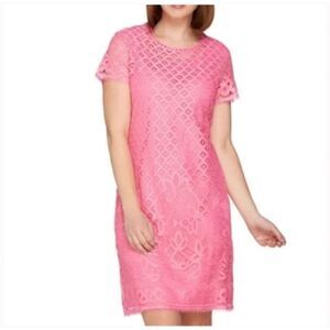 Isaac Mizrahi Live Lace Shift Dress Short Sleeve Barbie Pink US Size Medium
