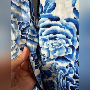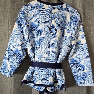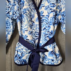 Isaac Mizrahi Live! Large Womens Floral Belted Quilt Jacket Blue Kimono QVC 1672