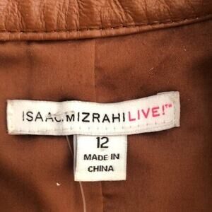Isaac Mizrahi Live! Leather Jacket with Ruffled front Full Zip long Sleeve Sz 12