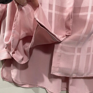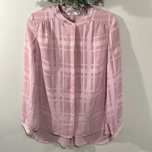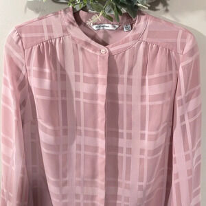 Isaac Mizrahi Live! Long Sleeve Pink Plaid Button Front Blouse in size 8. Great preowned condition. Hidden buttons down the front, button cuffs. Top layer is sheer with a lined body and round hem. Please see photos for approximate measurements and details. Item may show a difference in color based upon photography and perception. Photos are part of the description, as everyone’s level of condition may vary. From smoke free and pet free home. All packages are shipped the same or next business day.