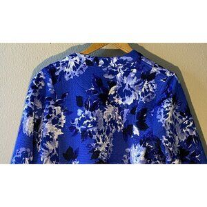Isaac Mizrahi Live Open Front Cardigan Jacket Large Blue Floral Quilted 3/4 Slv