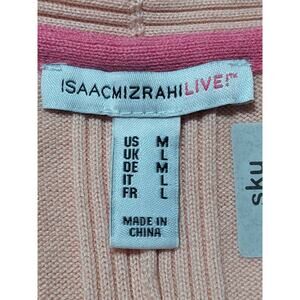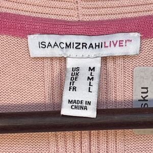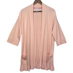 Isaac Mizrahi Live! Open Front Cardigan Sweater Women Size M Pink Flutter Hem