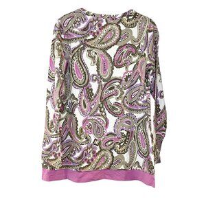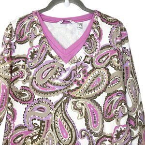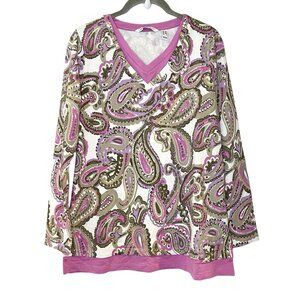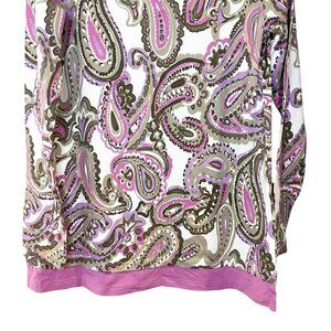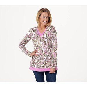 Isaac Mizrahi Live! Paisley Printed Layered Knit Top Pink Stretch a392613 XXS