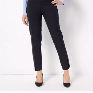 Isaac Mizrahi Live, petite pants, stretch slim pants, black ankle pants, pull-on pants, tapered leg, high waist, office wear, work pants, dress pants, lounge pants, comfortable pants, minimalist style, everyday essentials