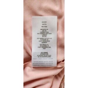 Feminine Isaac Mizrahi Live! blush pink lace blouse in size 14. Featuring a soft floral lace overlay with a comfortable polyester lining, this top offers both elegance and ease of wear. The cascading ruffle front and peplum-style hem create a flattering silhouette, while the sheer lace bell sleeves add a touch of romance. #fairy #boho