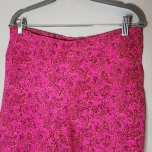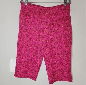Isaac Mizrahi Live Pink Paisley Stretch Denim Bermuda Shorts. Women's size 14.