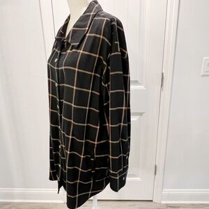 Isaac Mizrahi Live Plaid Black Tan Shacket Long Sleeve Size XL Mid Length