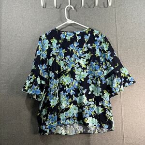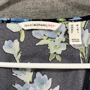 Isaac Mizrahi Live! Printed Stretch Crepe Blouse Navy, Medium