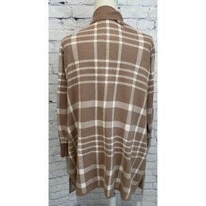 Isaac Mizrahi Live! QVC Pattern Jacquard Cozy Cardigan Cappuccino Plaid 1X