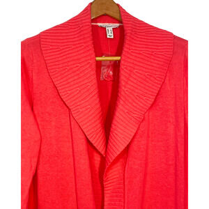 Isaac Mizrahi Live QVC Sz L Long Cardigan Duster Tropical Pink Cotton Blend Knit