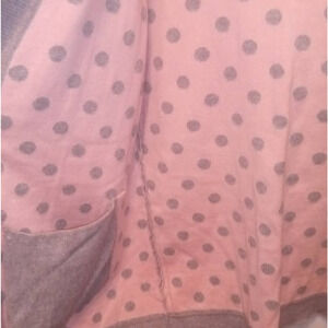 Isaac Mizrahi Live! QVC Women Medium Gray with Blush Pink Polka dots, Open Front, No Closure, 2 front pockets, Inside of sweater is Pink with Grey Polka Dots with pockets, Heavyweight, Great for Fall & Winter!