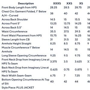 Length: missy length 28-1/2" to 30-5/8"; plus length 31" to 32-3/4"