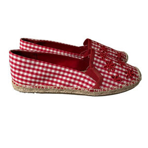 Isaac Mizrahi Live! Red Gingham Ladies Espadrilles Eyelet Embroidery Size 9 M