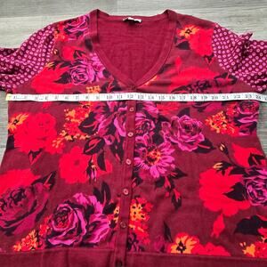 Isaac Mizrahi Live! Red Purple Floral Print V Neck Long Button Cardigan Sweater