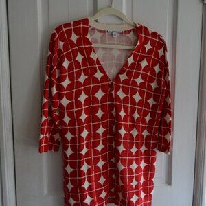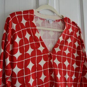 Isaac Mizrahi Live Red White Retro 60s Mod Geometric Quarter Sleeve Card…