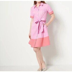 Isaac Mizrahi Live! Regular Color Block Poplin Dress Dress Classic Pink, Reg 12.