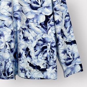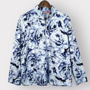 Isaac Mizrahi Live! SOHO Anorak Jacket Women M Blue Floral Pockets Full Zip Knit