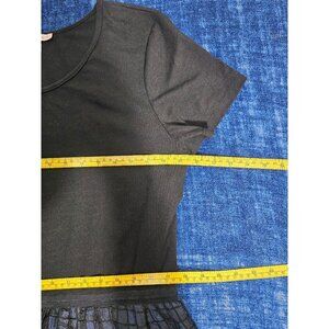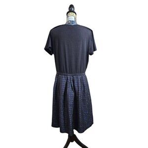 Super comfy and cute yet still dressy! Black cotton tee shirt top with scoop neck with attached jacquard-like black and blue abstract print skirt with elastic waist, size XL. Worn and washed once! Flat lay measurements: chest 20.5", waist unstretched 17.5", skirt length 21".