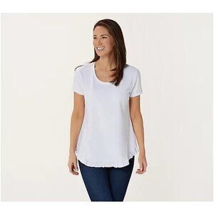 Isaac Mizrahi Live! Scoop Neck Curved Ruffle Hem Knit Top Bright White,XS