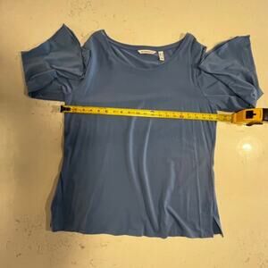 Isaac Mizrahi Live! Scoop Neck Top w/ Bracelet Ruffle Sleeve Urban Blue Large
