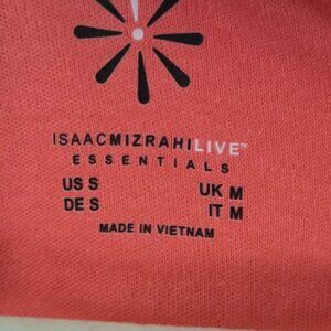 This flamingo pink tunic by Isaac Mizrahi is perfect for adding a pop of color to your wardrobe. Designed with a scoop neck and convenient pockets, it's both stylish and functional.
