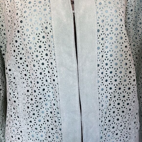 Isaac Mizrahi Live Size 18W Seafoam Green Laser Cut Genuine Suede Floral Jacket