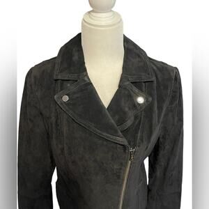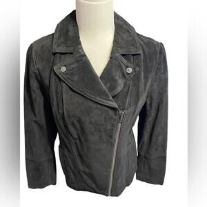 Isaac Mizrahi Live! Black Suede Motorcycle Jacket with Printed Lining New Size 6