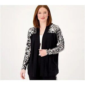 Isaac Mizrahi Live! Soho Baby French Terry Open Front Cardigan Pitch Black,XS