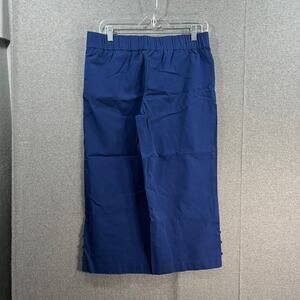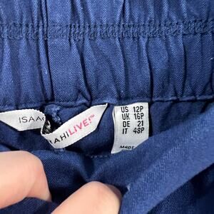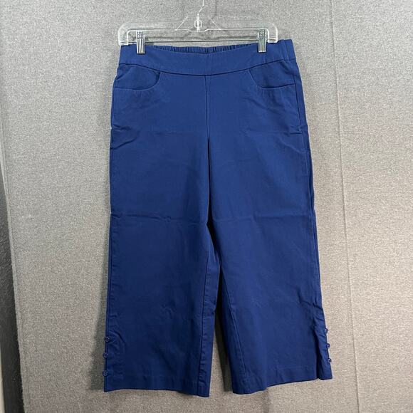 Isaac Mizrahi Live! Stretch Crop Wide Leg with Button Royal Navy Petite 12