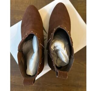 Isaac Mizrahi Live! Studded Suede Ankle Bootie Coffee 7.5 M