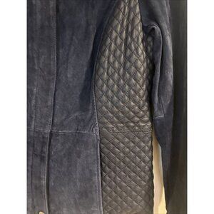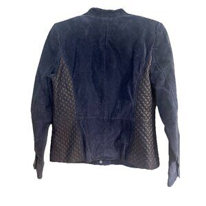 Isaac Mizrahi Live! Suede Leather Jacket Blue Size 6 Womens Zip Up Moto Military