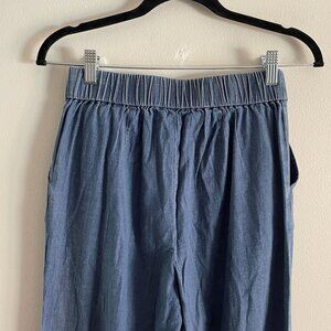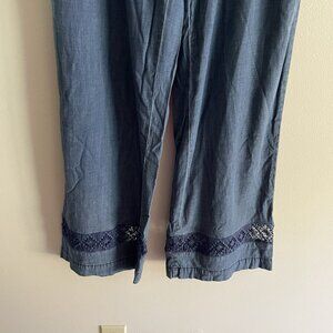 Isaac Mizrahi Live Women Sz XXST Bridgehampton Chambray Lace Trim Wide Leg Pants.