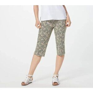 Isaac Mizrahi Live Tall 24/7 Stretch Printed Pedal Pushers 28 Tan Paisley NEW