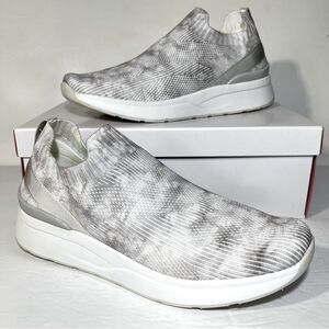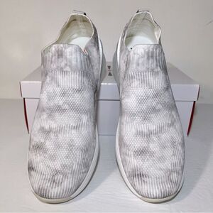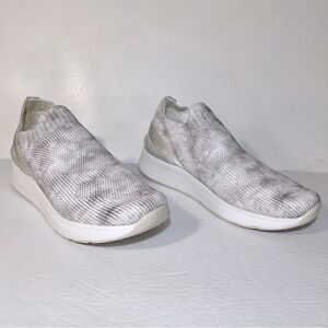 Stretch knit, tie-dye upper; heel tab; slip-on style
