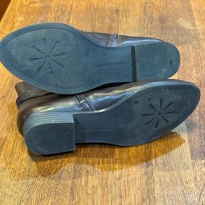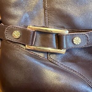 The gold buckle and small gold stud accents add attractive detailing to the boot. Other features include a zipper closure and almond shape toe.