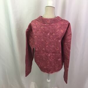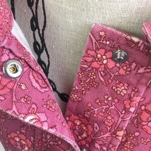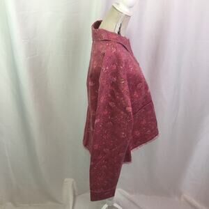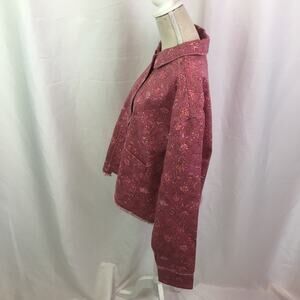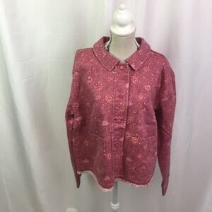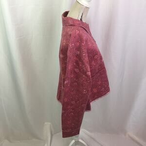 Isaac Mizrahi Live True Denim Printed Fringed Hem Jacket Pink Floral Small
