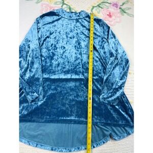 Isaac Mizrahi Live! Womens 3XL Blue Velvet Long Sleeve Mock Neck Hi Low Top