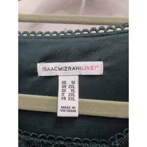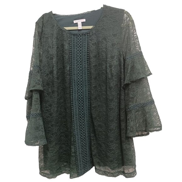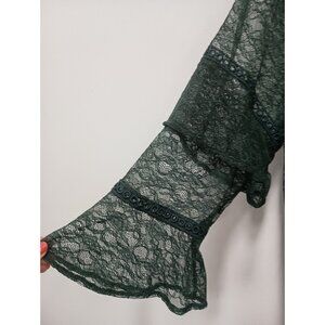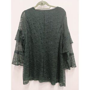 Isaac Mizrahi Live Womens BOHO Blouse 1X Dark Green Lace Bell Sleeve Whimsygoth