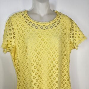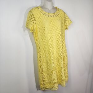 Isaac Mizrahi Live! Womens Dress Medium Stretch Lace Short Sleeve Shift Yellow