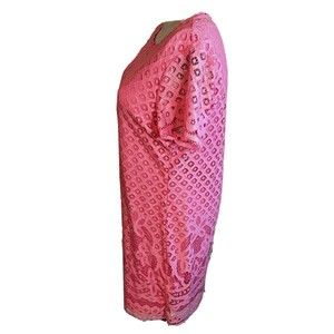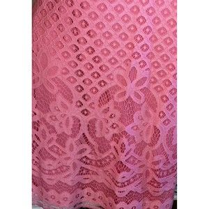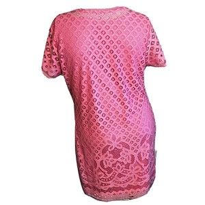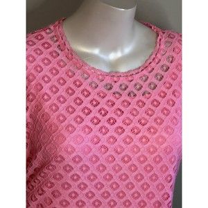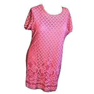 Isaac Mizrahi Live Womens Dress Stretch Sz Large Pink Lace Fringe Short Sleeve