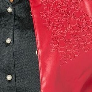 Isaac Mizrahi Live! Women's Jacket Sz L Embroidered Faux Leather Red A667732