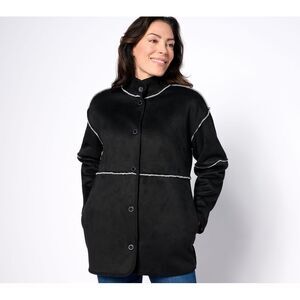 Isaac Mizrahi Live! Women's Jacket Sz L Reversible Faux Shearling Black A648489
