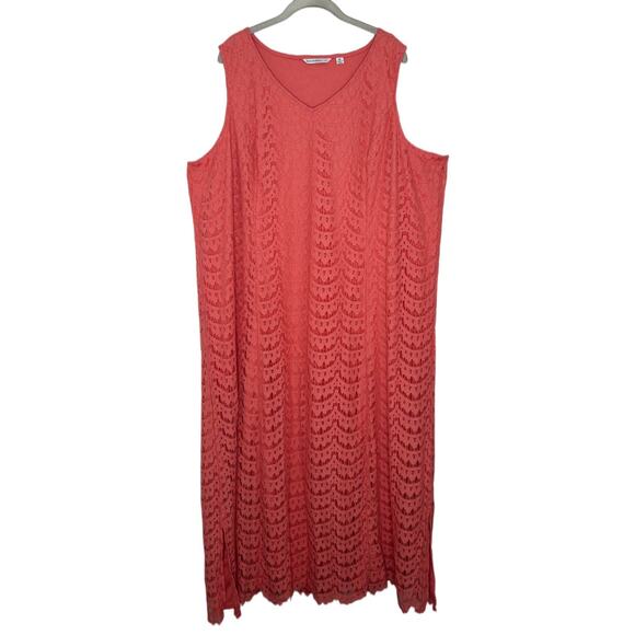 Isaac Mizrahi Live Womens Peach Floral Sleeveless Lace Maxi Dress Plus Size 3x