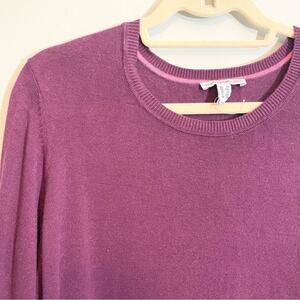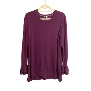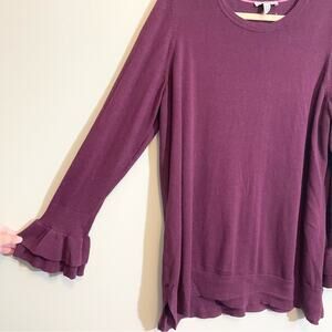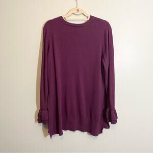 Isaac Mizrahi Live! Women's Purple Crew Neck Long Ruffle Bell Sleeve Sweater 1X